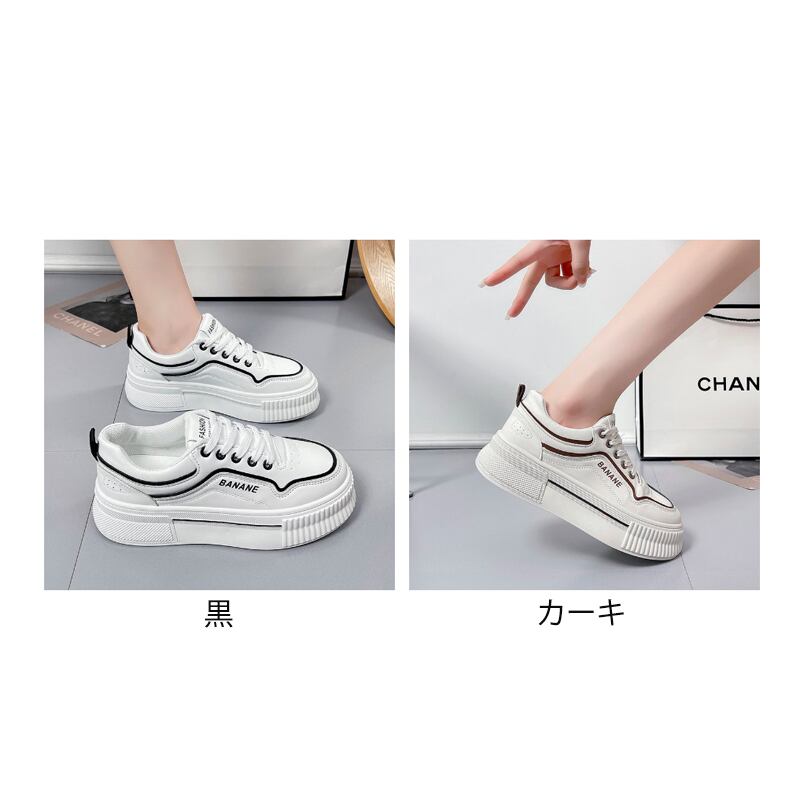 2024新作 スニーカー 靴 シューズ 紐靴 スタイルアップ ホワイト 厚底 可愛い ロゴ 脚長