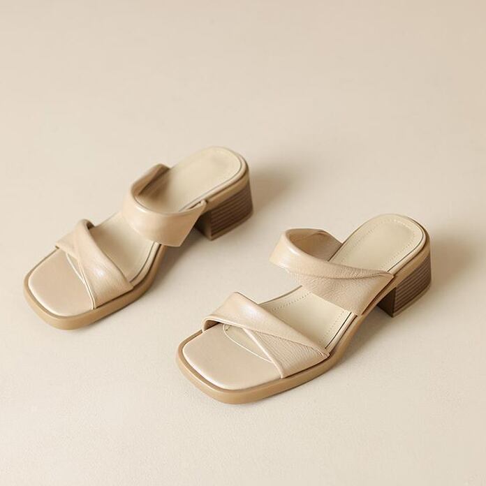 2024新作 サンダル 靴 チャンキーヒール 滑り止め ダブルベルト スタイルアップ 厚底 チャンキーヒール