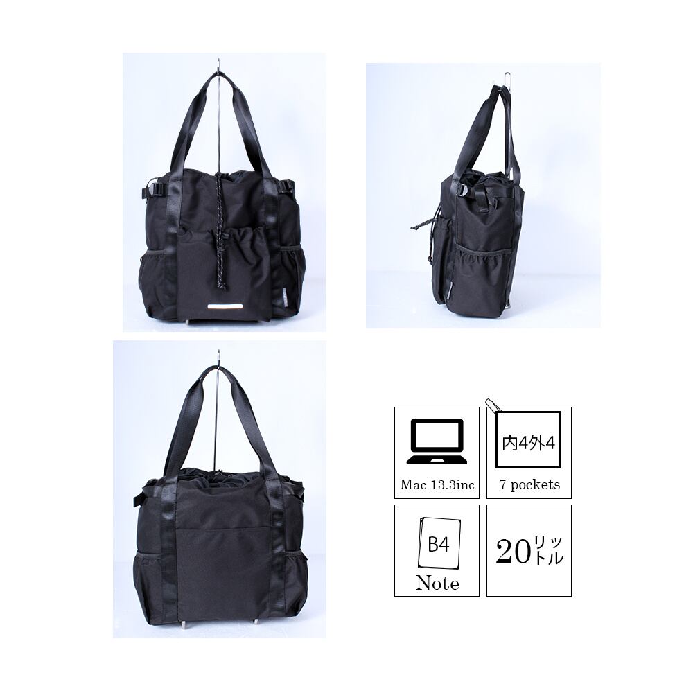 男女兼用ジェンダーレスに使えるトートバッグです。素材には撥水性が高く非常に発色の良い軽量ポリエステル素材を使用し、デイリーに使えるアイテムになっています。正面のポケットはくしゅっとしたデザインがカジュアル感を出していて、ティッシュやハンカチなど日常使いする荷物を出し入れするのに便利です。メインルームはドローコードとプラスチックのコードストッパーで開閉します。内装上部にはドローコードとカラビナがついているので、鍵関連や、定期ケースなども取り付け可能な便利仕様です。両サイドには、底にタック、上部にギャザーの入った収納力のあるアクセントにドローコードの付いた立体ポケットも付いています。発色が綺麗で軽く、撥水性にも優れた商品を是非お試しくださいませ。