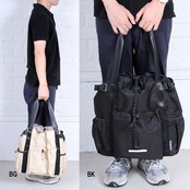 口絞りのデザインが◎ドローコードのデザインもアクセントになるカジュアルトートバッグ