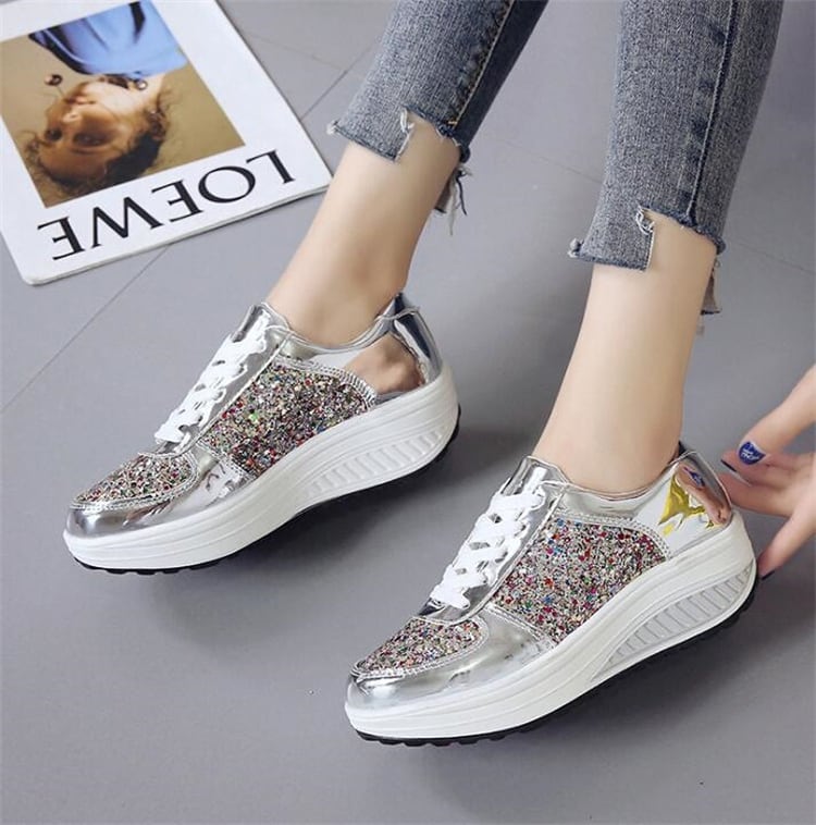 スパンコール 超軽量 スニーカー ラウンドトゥ 快適である 大きいサイズ
