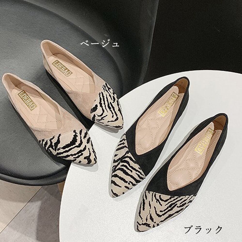 ポインテッドトゥ フラットシューズ 痛くない アニマル柄バレエシューズ パンプス 歩きやすい オフィス 春 韓国配色OL ゼブラ柄pumps カジュアルスエード
