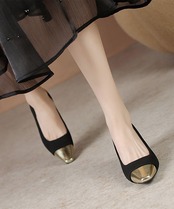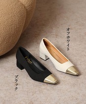 つま先には艶やかなゴールドのトゥキャップを取り入れており、モダンで洗練された印象を与える