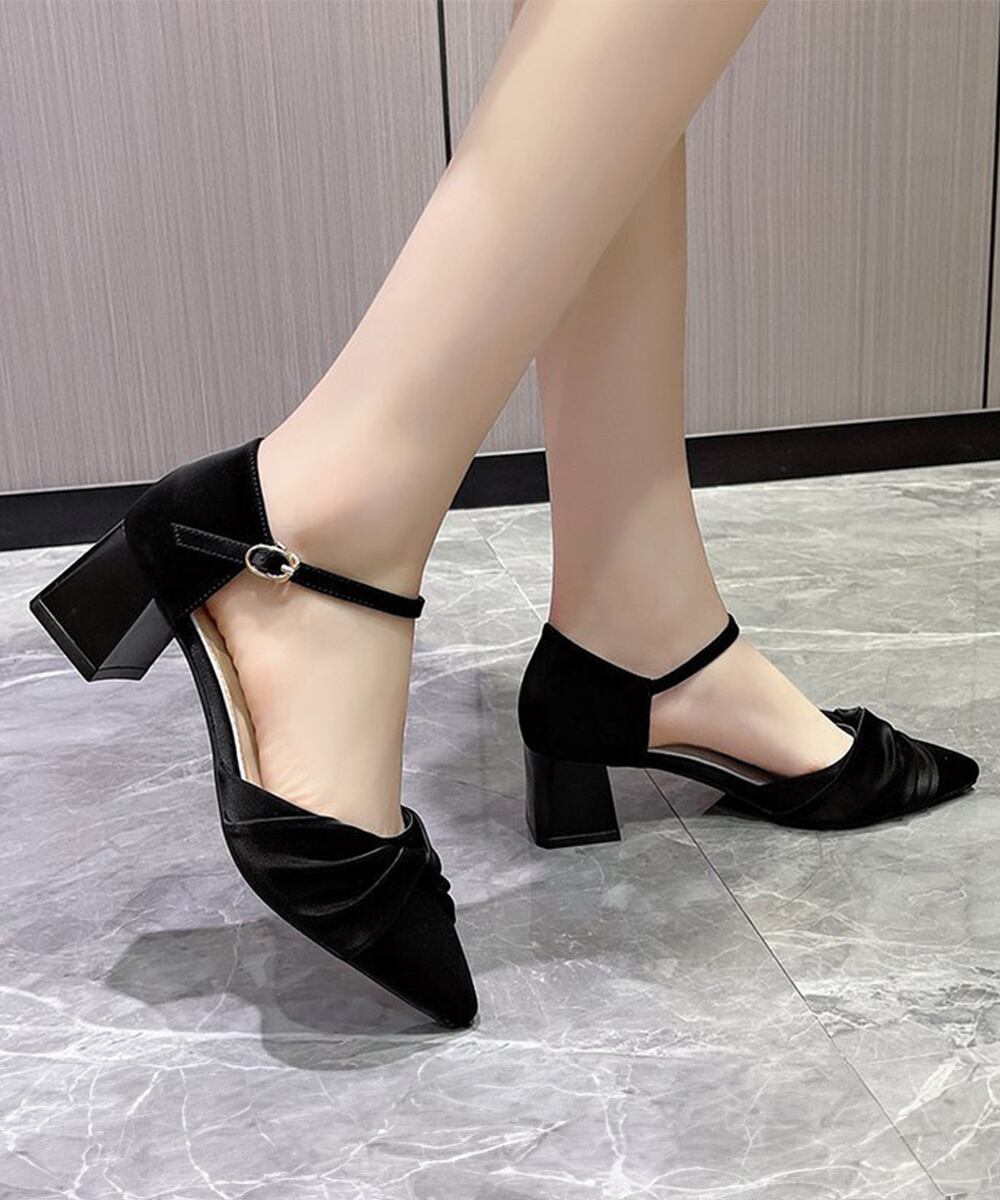 細めの足首ストラップで足元を華奢見せ、歩いても走っても脱げにくいから安定感抜群