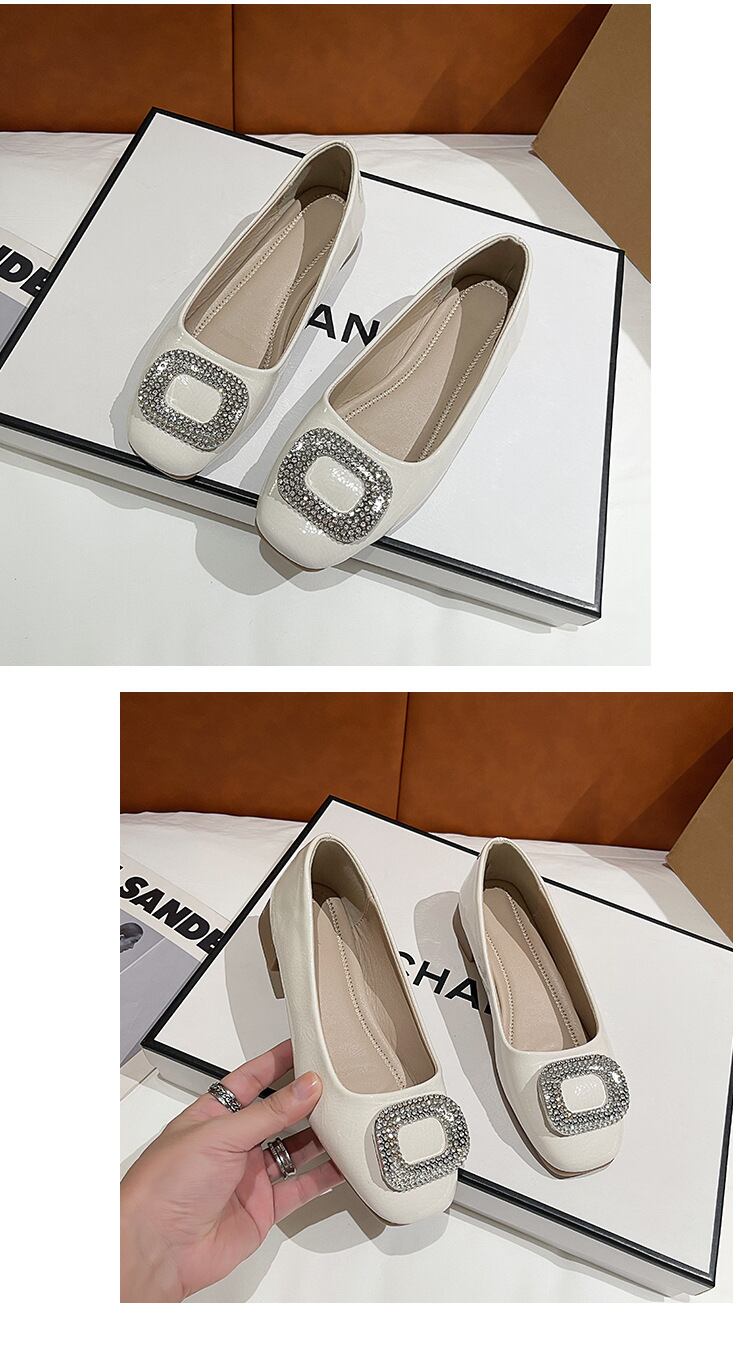 パンプス スクエア ラインストーン スタイルアップ ソフト キラキラ チャンキーヒール