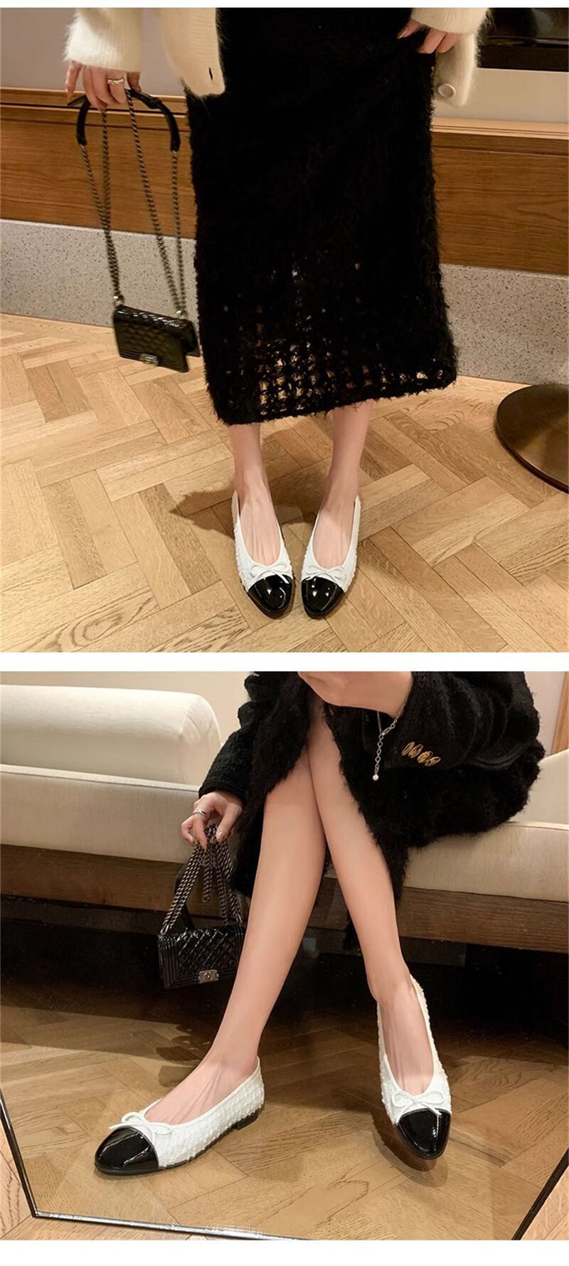 2024新作 バレエシューズ 靴 パンプス ミックスカラー リボン 春秋 レディース 韓国ファッション