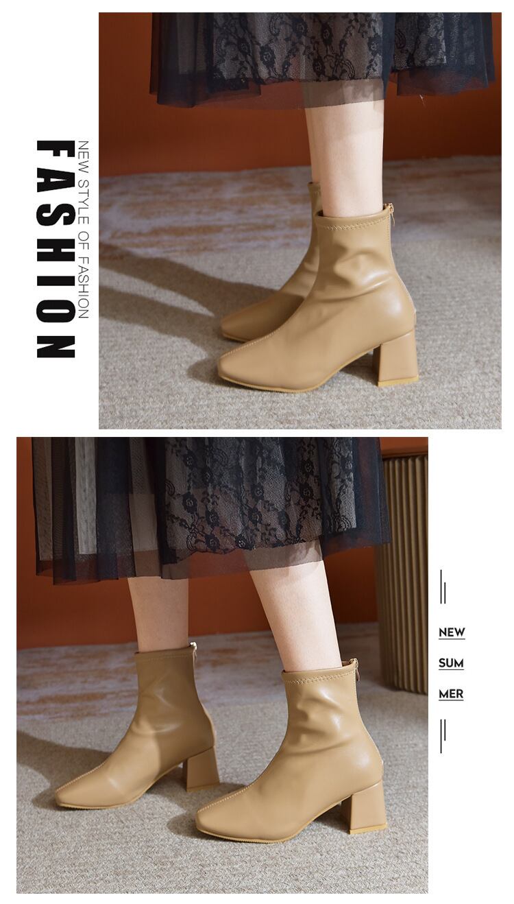 定番 人気 ショートブーツ チャンキーヒール 厚底 黒 ブラック 太ヒール 裏起毛