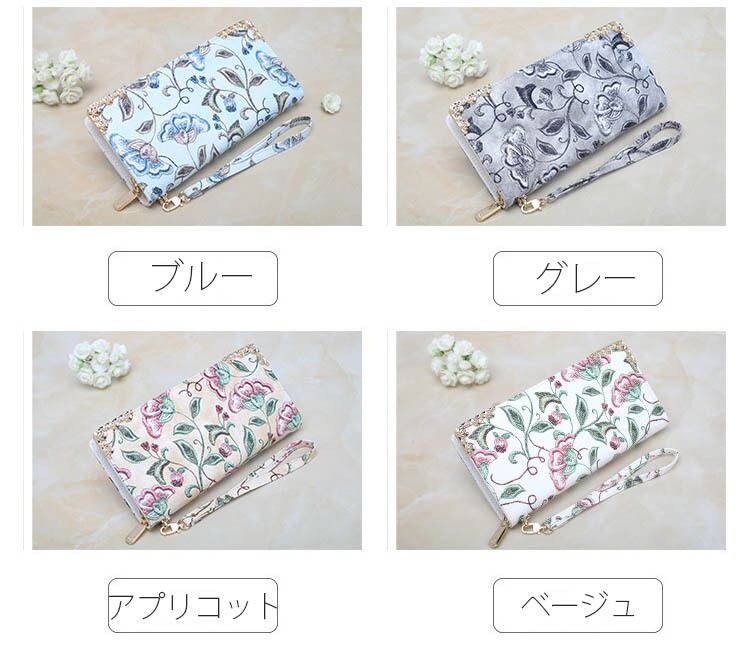 ボタニカル柄スリム長財布 カード収納たっぷり 可愛い刺繍風