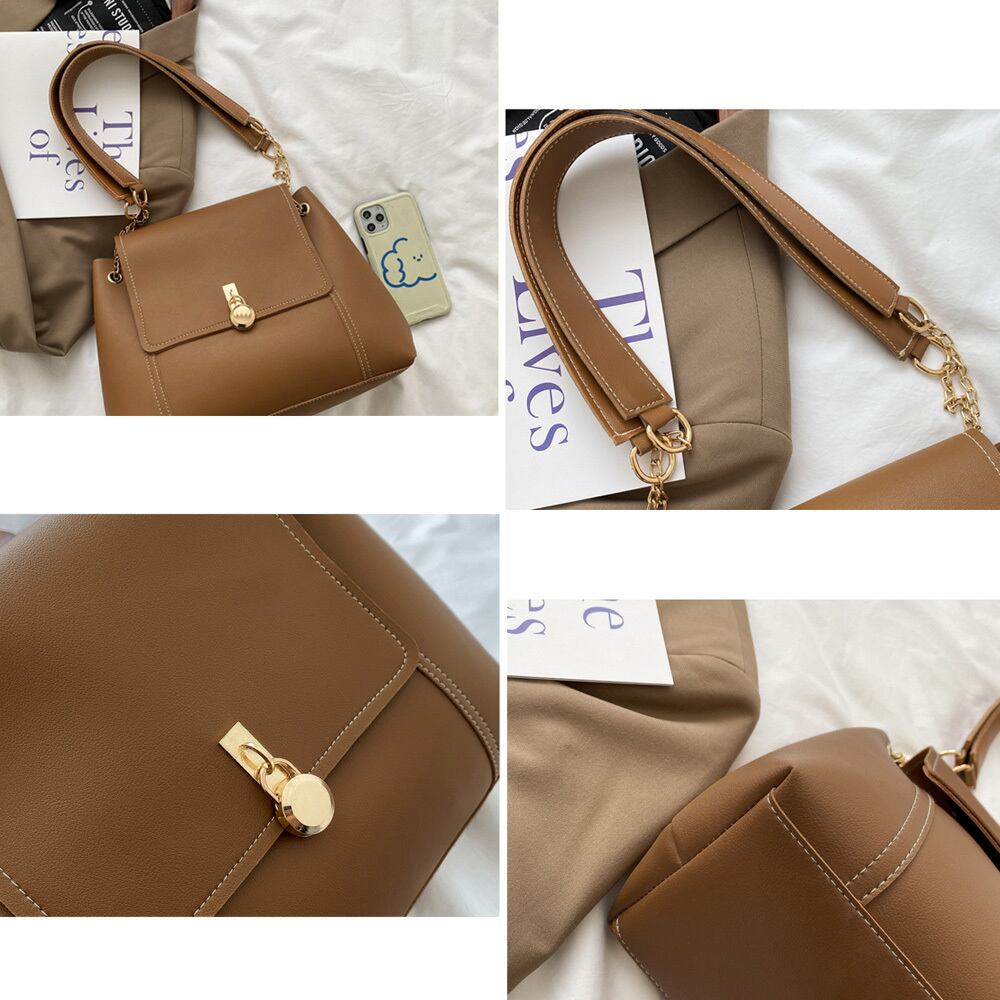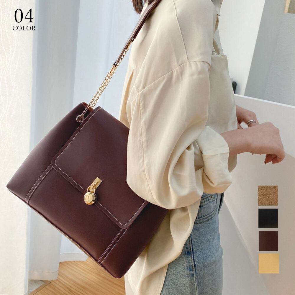 ゴールド色の丸型南京錠の金具がオトナガーリーなかぶせ式ショルダーバッグ