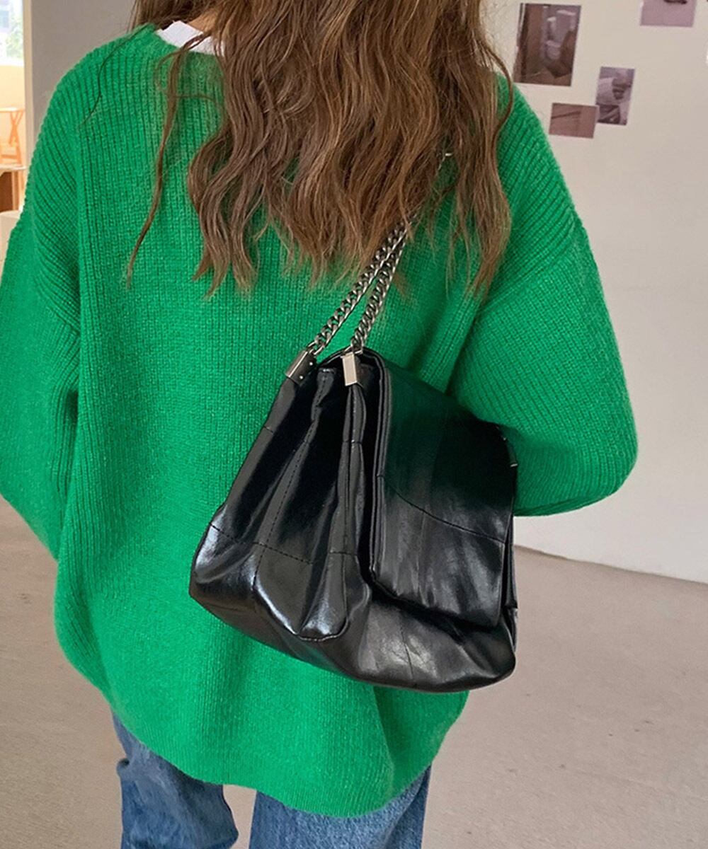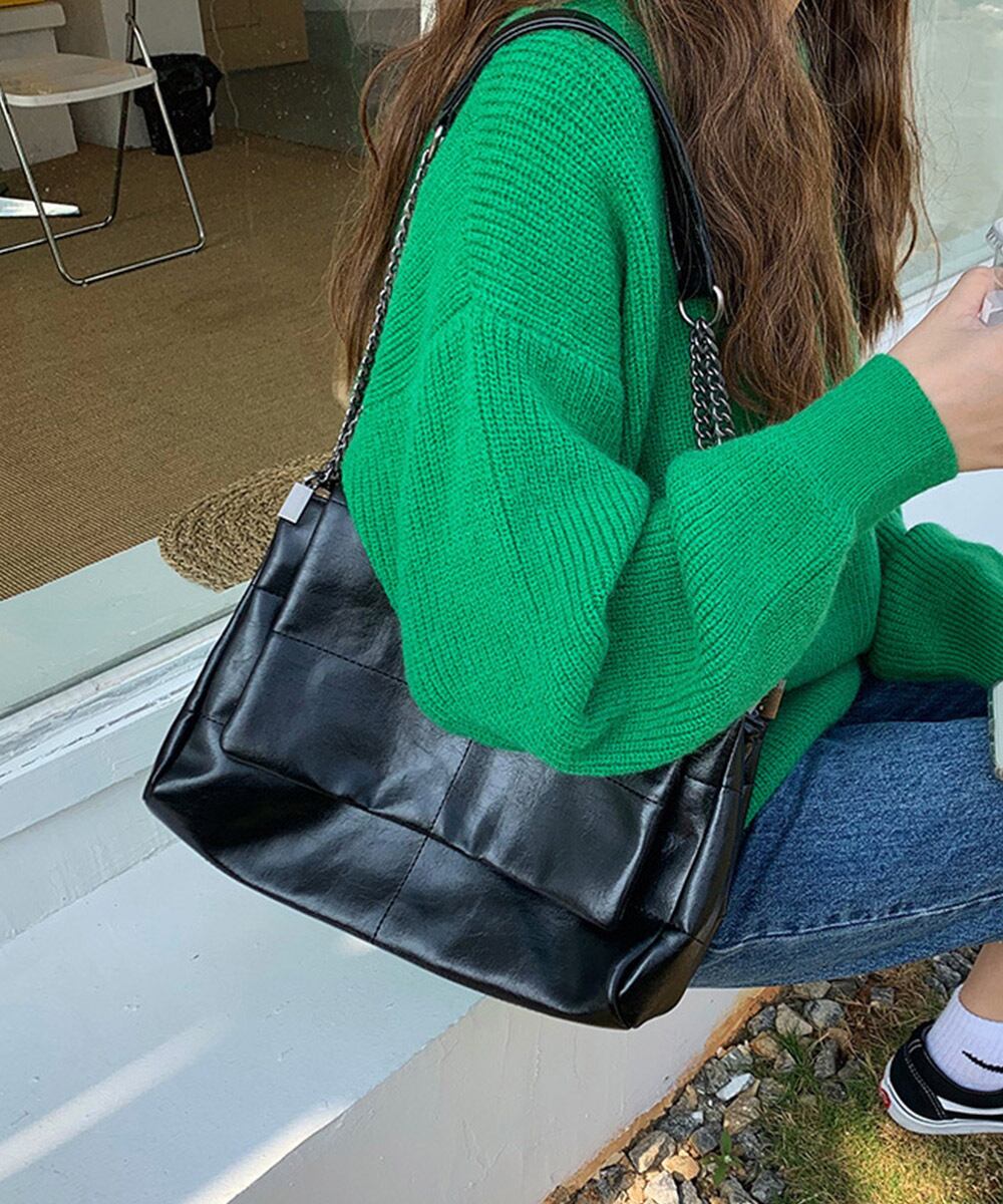 合皮バッグ大人女子 無地おしゃれかばん レディースバッグ黒