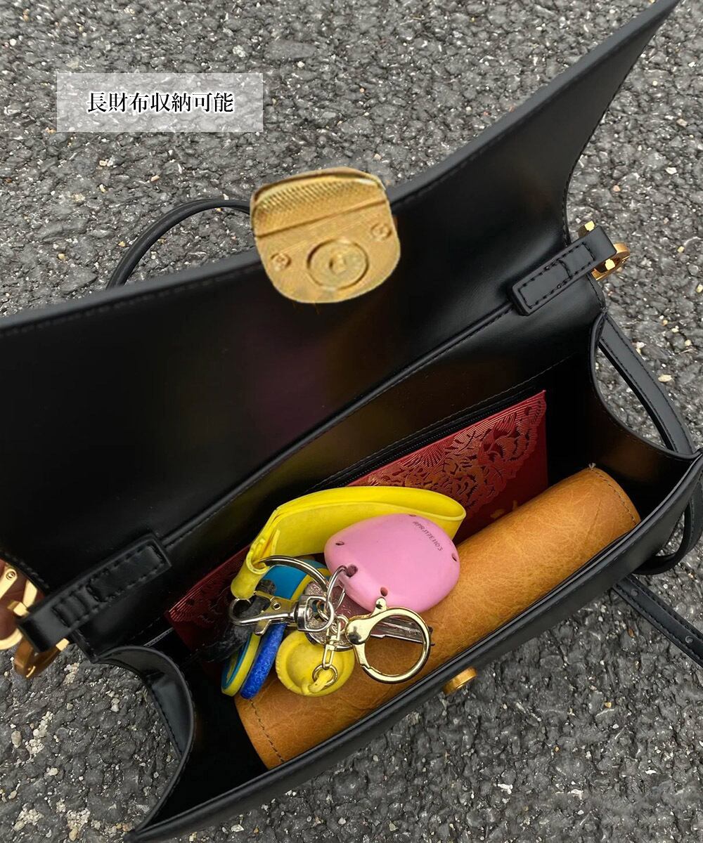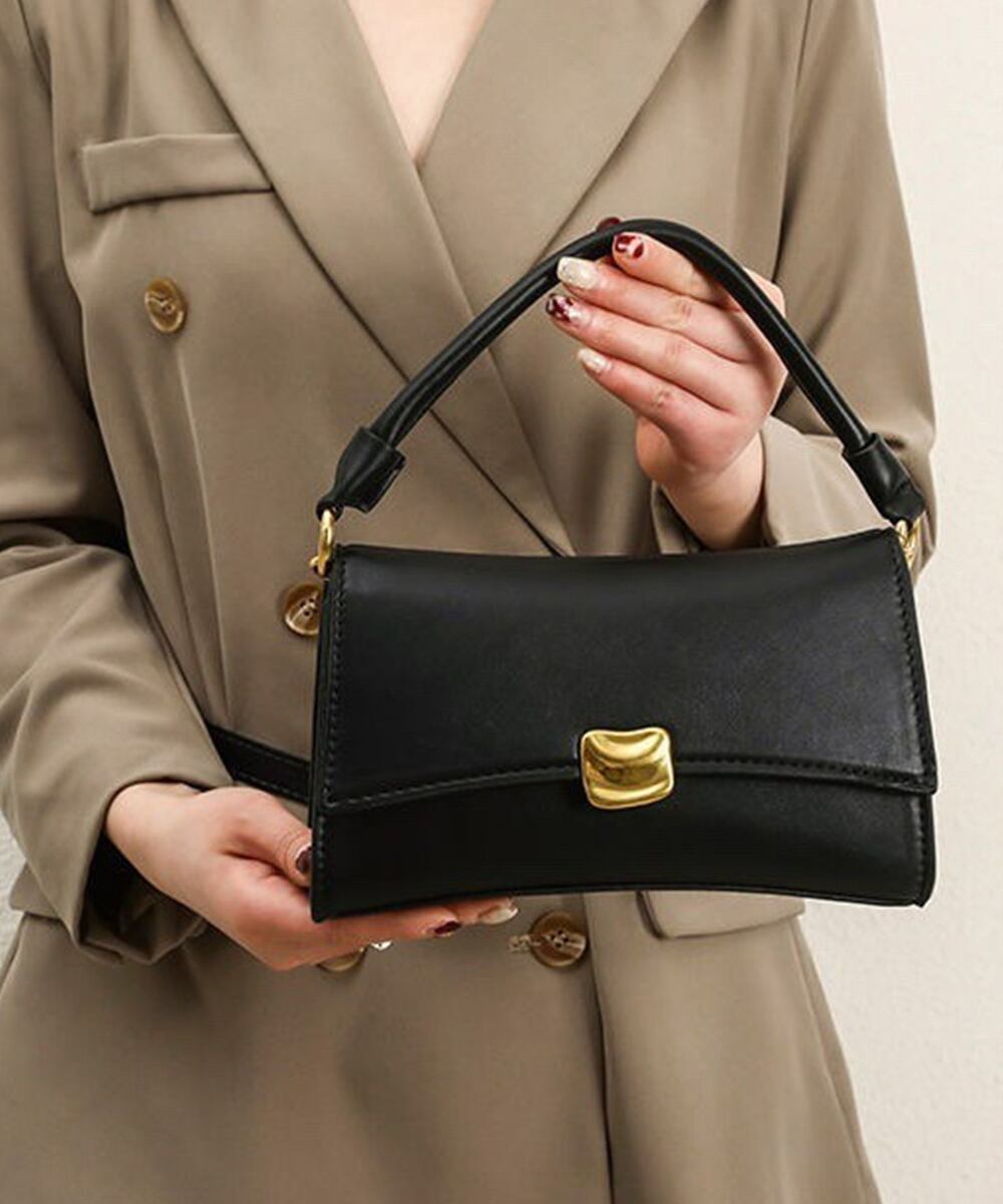 フロントに施された金具がリッチな雰囲気を演出するバッグです。