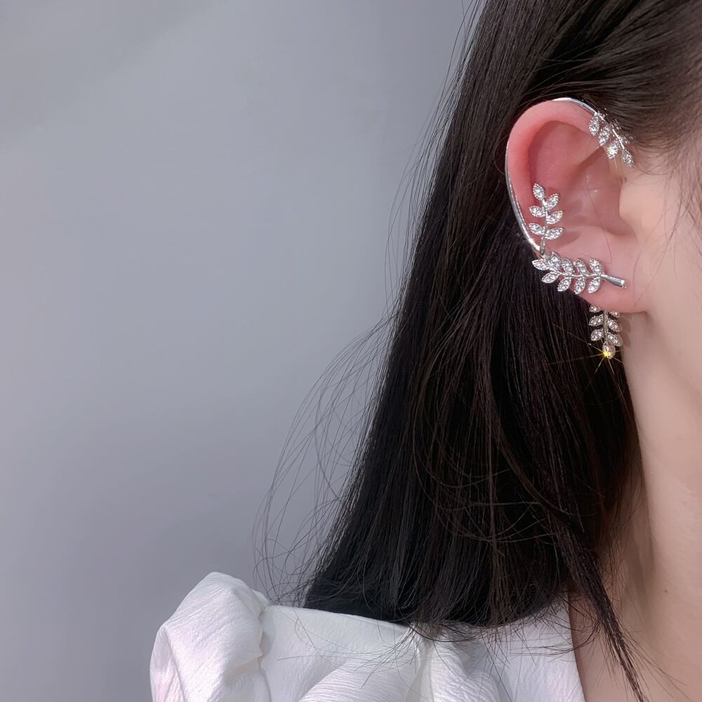葉をモチーフにしたデザインにラインストーンを散りばめ、キラキラ華やかなイヤーラップピアス