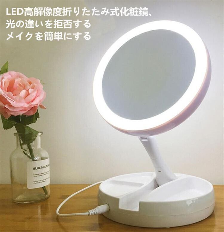化粧鏡 ライト付き ドレッシング スマート補助光 補助光 折りたたみ鏡 寮 デスクトップ
