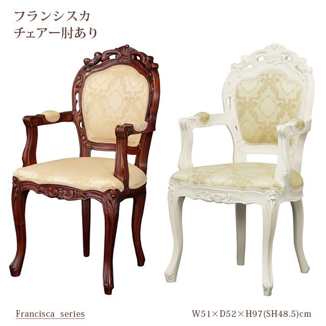 フランシスカ チェアー肘付(ブラウン)(ホワイト) ※北海道・沖縄・離島は別途条件あり