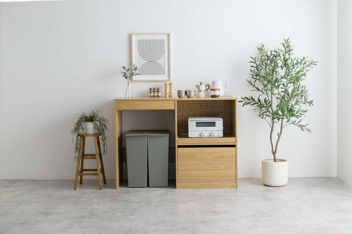 キッチン家電や食器・小物などをまとめて収納できる『Conina(コシーナ)』シリーズのゴミ箱上レンジラック
