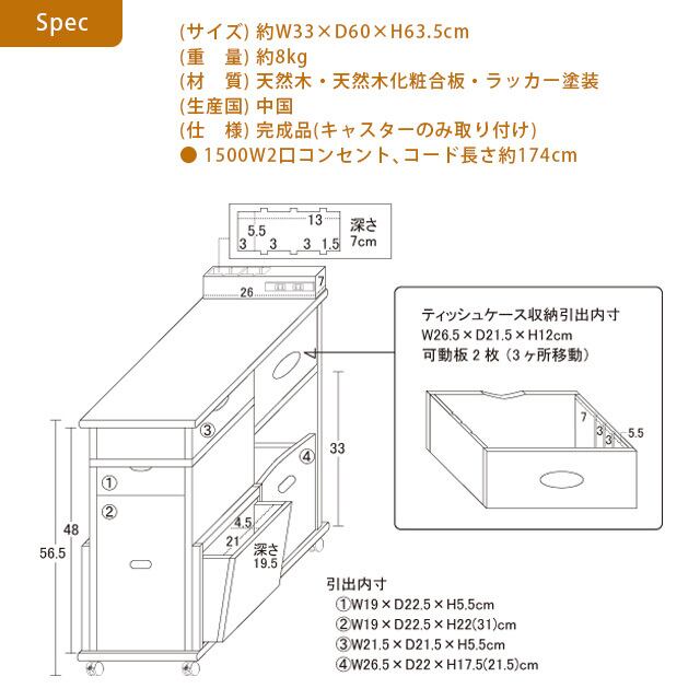 【商品サイズ】約 横33×奥行60×高さ63.5cm