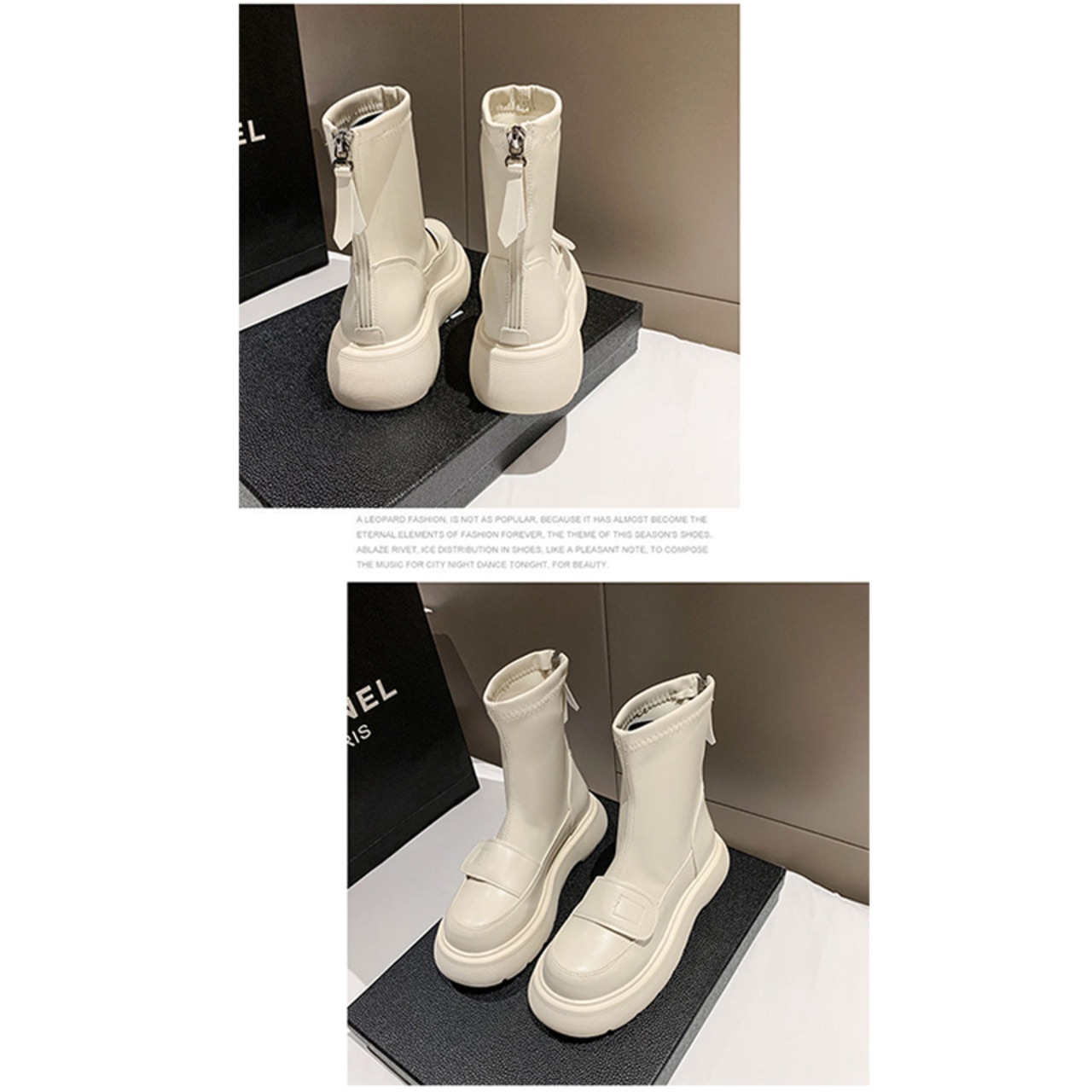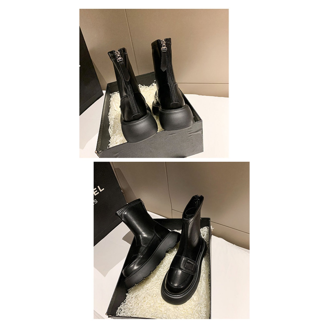2024新作 レディース 靴 ショートブーツ フラット 厚底 裏起毛 あったか バックファスナー