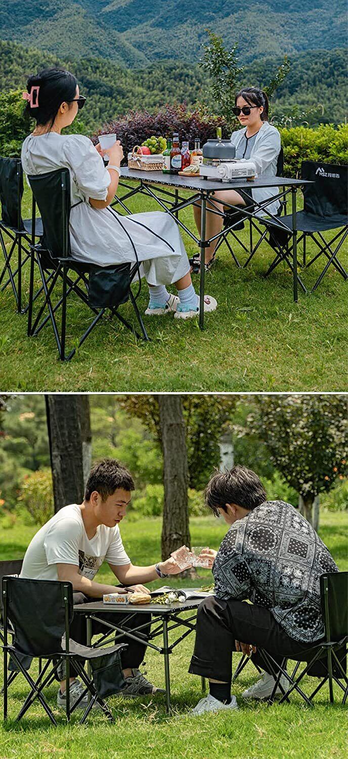 アウトドア スクエアテーブル7点セット(120CM) 簡単組立 コンパクト 収納バッグ付 バーベキュ